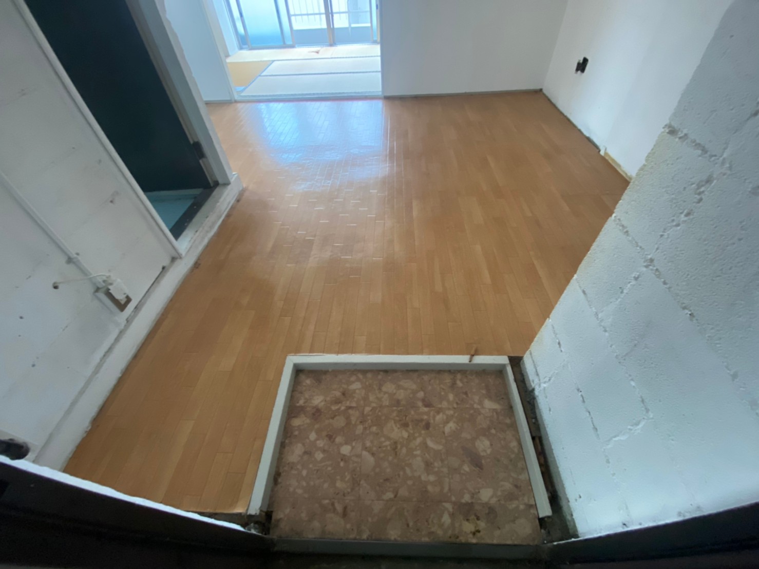 収納は右側に設置元の空間にはフロアタイルを貼り