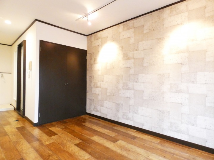 壁一面に使用した石目調のクロスを柔らかく照らし、