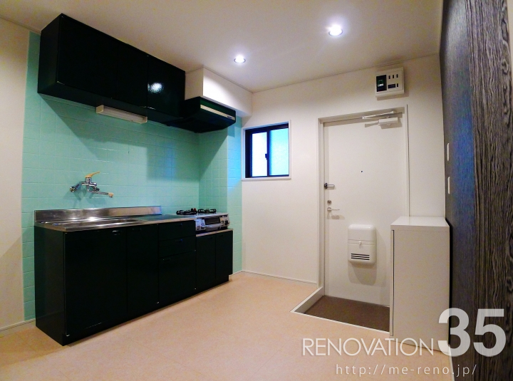 キッチン建具に深緑を配色しました!